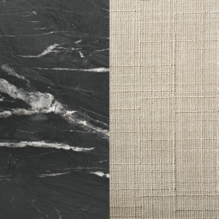 Envision your gatherings transformed with this exquisite dining set, where the sleek lines of modern design meet the timeless allure of faux marble. The table's luxurious black marble-esque top is a symphony of style, supported by fin-style legs that ground it with a touch of sophistication. As your ensemble grows with the seamless self-storing extension, the dining tableau adapts, offering a spacious stage for both feasts and intimate conversations. Accompanying the table, the Danish Y-shaped wishbone chairs, dressed in black and beige, whisper of coastal breezes and relaxed elegance, their form both a nod to tradition and a statement of contemporary grace. This dining set doesn't just host meals; it curates experiences.