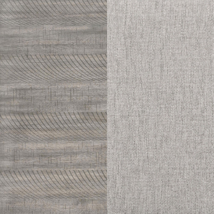 Elevate your dining experience with this farmhouse-inspired two-tone finished dining set. The table extends from 60" to 78" with an 18" extension leaf and features a wood on metal glide for smooth transitions. The side chairs, available in both regular and kitchen counter height, boast a grey and black two-tone design, with a plywood base and 100% polyester dove grey fabric for maximum comfort.
