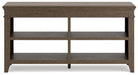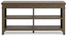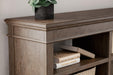 Make a style statement with this home office credenza. Its traditional design is updated with an on-trend weathered gray finish and wire-brushed texture. The credenza's open storage and adjustable shelving add up to a well-organized workspace.